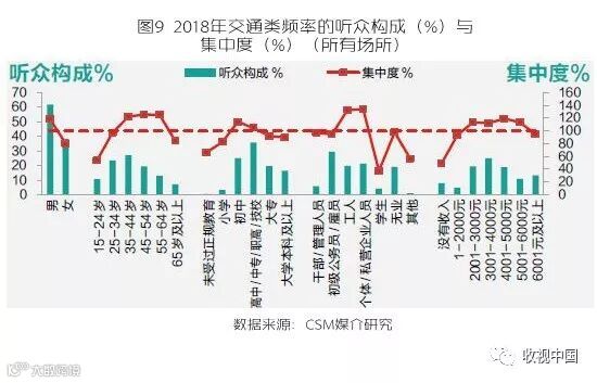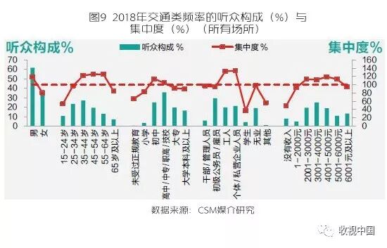 交通类频率要想进一步提升品牌价值,就需要准确定位听众群体,明确哪些人群是交通类频率的特定目标听众。听众构成反映的是交通类频率的主要收听人群,而集中度反映的是哪类人群更爱收听交通类频率。