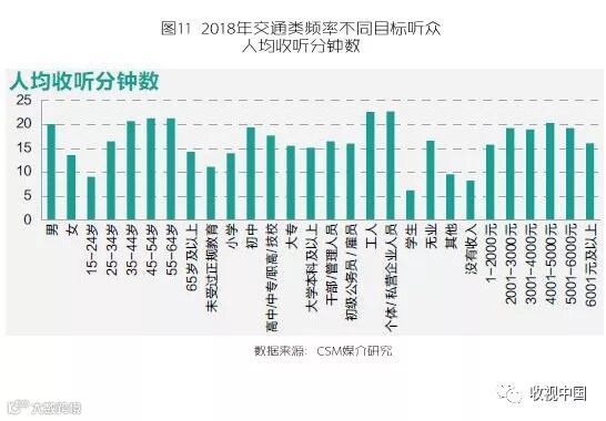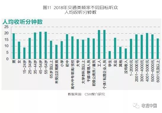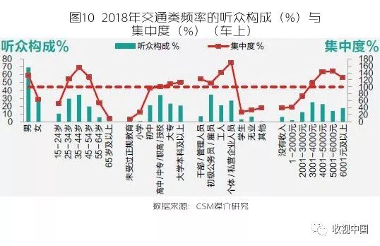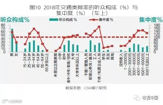 1、车上听众中,中青年、高学历、高收入群体更为喜爱收听交通类频率