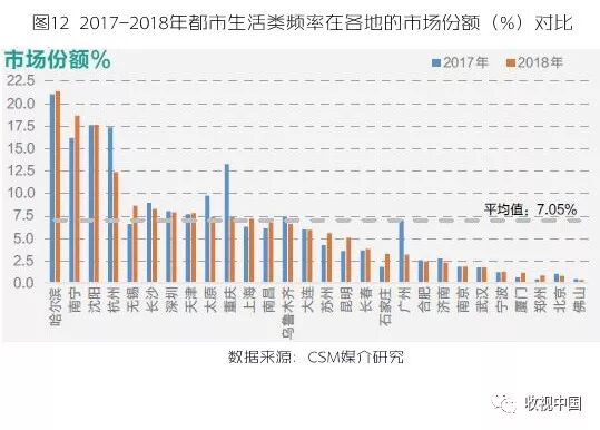 受各地市场竞争环境差异的影响,都市生活类频率在各地的竞争力表现差异性较大,11个城市的该类频率份额超过全国平均值,15个城市的份额对比去年有提升(图12)。
