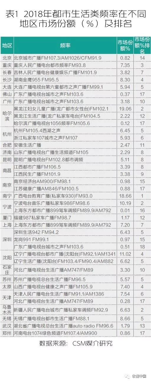 2、大部分都市生活类频率在当地的竞争力排名居市场中游