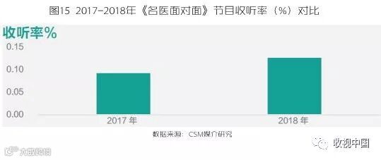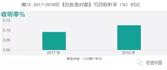 南方生活广播是广东省唯一一个以“倡导健康养生,传播岭南文化”为定位的广播频率,每周一至周五15:00-16:00时段播出的《名医面对面》是该频率的品牌节目,坚持每天邀请知名专家学者到直播室,开播五年来累计超过1000名专家名医上节目,累计直接服务人群超万人,每期的内容在微信公众号上进行预告,既能通过名医解答疾病的治疗与预防,也能够结合时节、气候等将日常保健方法介绍给广大听众。多年来,节目屡次获国家级和省部级奖项。2018年的收听率对比2017年有提升(图15)。