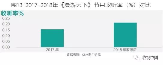 线下活动方面,节目打造了“车轮造访历史,脚步丈量文明”、“让世界看见我”、“福满2018”等多个品牌线下活动,深受客户和受众的喜爱。与著名的品牌“广之旅”和“金马国旅”旅行社打造的旅游特辑也收获良好的传播效果。经过以上多方面的探索,节目在去年的收听率较2017年有较大幅度提升 (图13)。