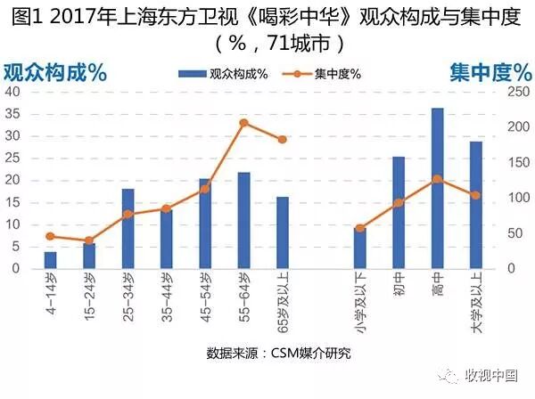 观众数据反馈上,中老年观众是绝对的主力观众自不必说,23-34岁这部分年轻观众的收视时长占比也较为明显(图1)。