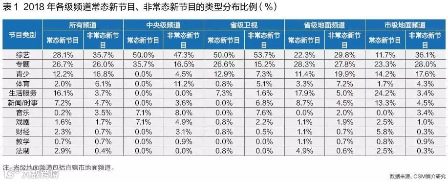 [2]本文对新节目的界定为:各上星频道18:00-24:00播出、省/市级地面频道17:00-24:00播出,同名称节目在2012年1月1日至2017年12月31日期间未出现过,节目长度超过20分钟(含20分钟)。以下节目类型不属于新节目范围:广告、频道包装、节目预告、导视节目、电视剧、电影、外语、各类体育赛事等。