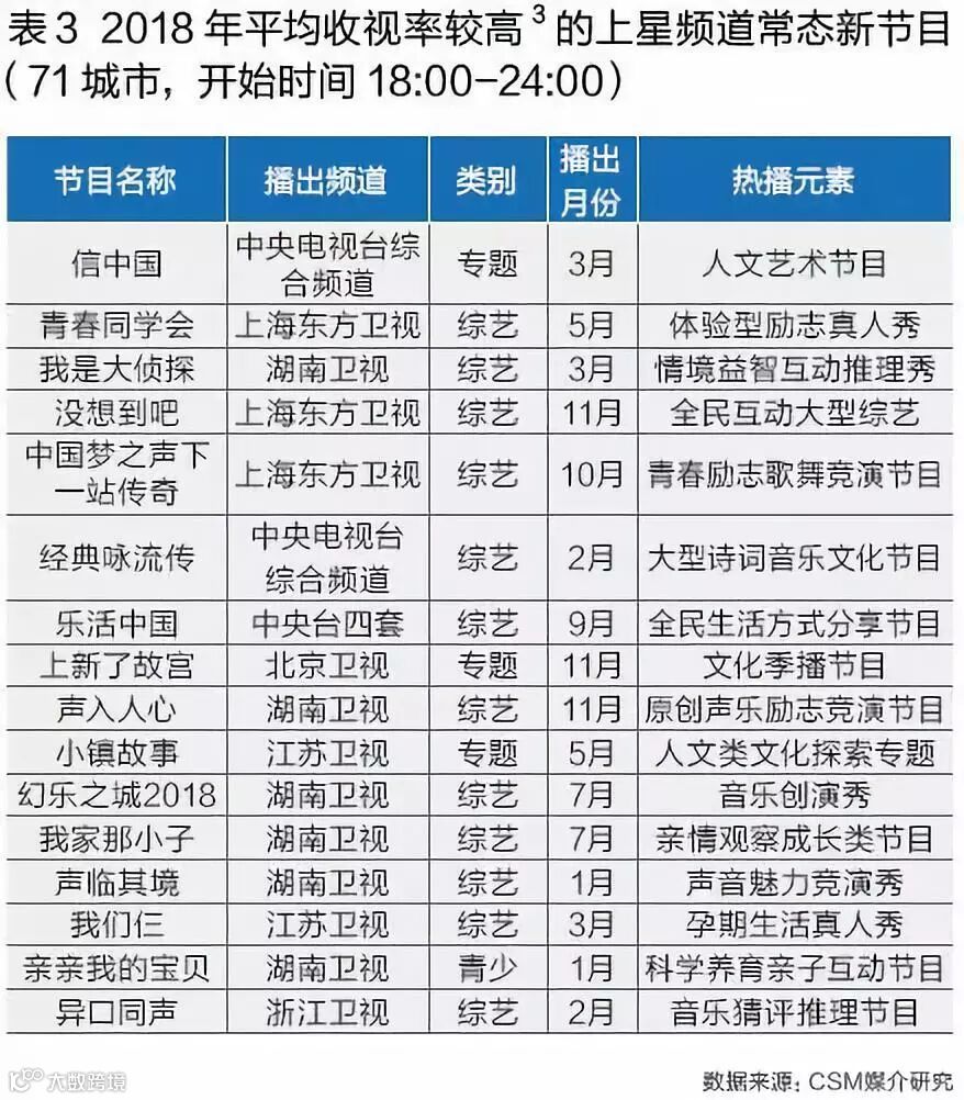本文基于CSM媒介研究收视调查数据,对2018年中央级频道、省级卫视和71个城市[1]地面频道在晚间17:00-24:00时段新节目[2]的播出与收视状况进行梳理与分析,以期对2018年全年晚间新节目的发展变化状况做一回顾和总结。