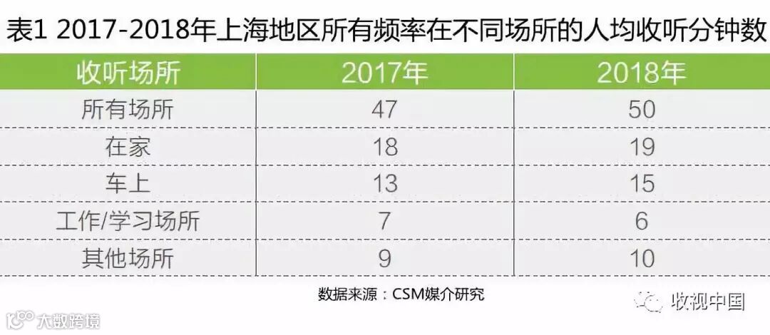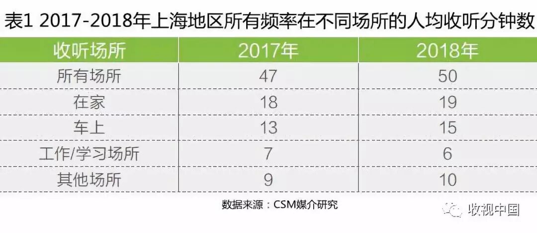 一、上海地区广播收听时长上升,在家及车上收听居主导地位,车上收听比重有所增加
