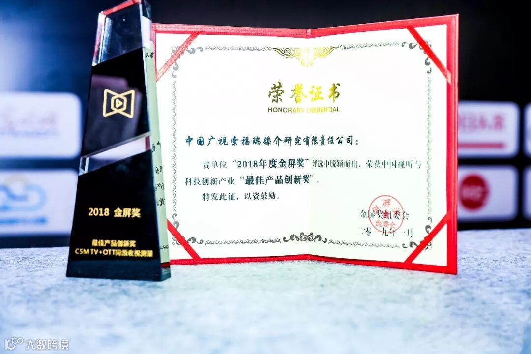 CSM媒介研究凭借 “CSM TV+OTT同源收视测量产品”荣获2018年度金屏奖“最佳产品创新奖”。