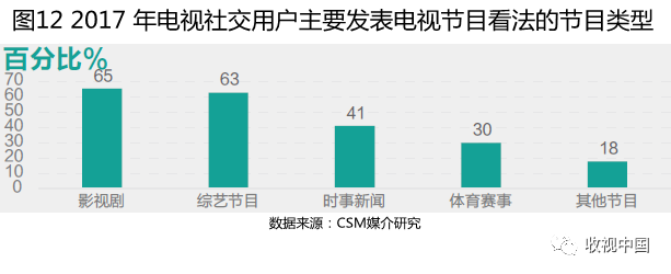 1、综艺、影视剧是电视社交用户最愿意发表看法的节目类型