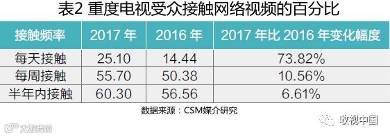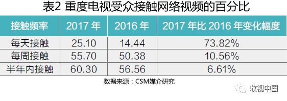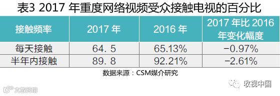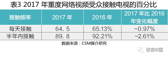 根据受众接触电视和网络视频的频率,将每天都看电视的受众定义为重度电视受众,将每周都接触网络视频受众定义为重度网络视频受众。
