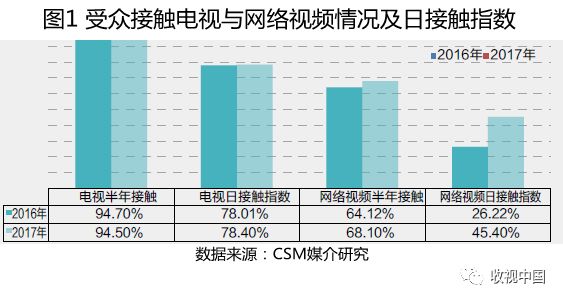 对于同为视听媒介的网络视频与传统电视来说,二者在满足观众需求方面有相似处亦有相异处,两者更多呈现竞争性共存关系。在融媒进一步深入发展的当下,受众对二者的选择行为成为了业界一个关心的课题。本文基于CSM媒介研究2016-2017年十二城市[3]基础研究数据,来重新解读近期电视媒体和网络视频的受众在媒介接触行为、受众构成和内容选择等方面的特征与变化,以期对业内人士有所借鉴。