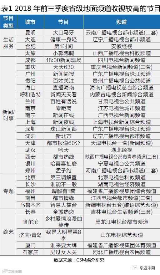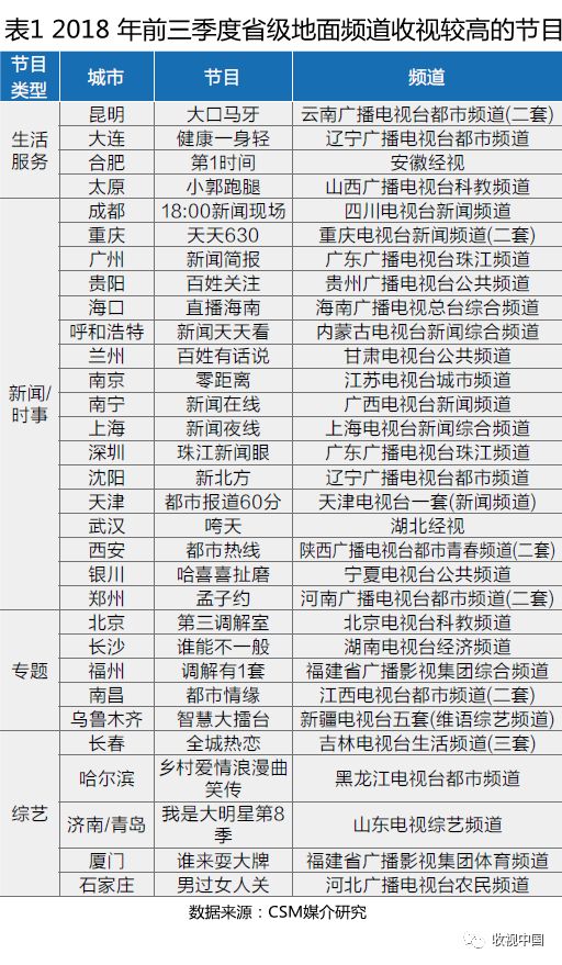 本文即从当前我国地面频道的收视现状入手,以2018年前三季度中心城市中收视领先的地面频道节目为切入点,探讨其在定位、内容、模式等方面的创新共性与特征。