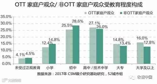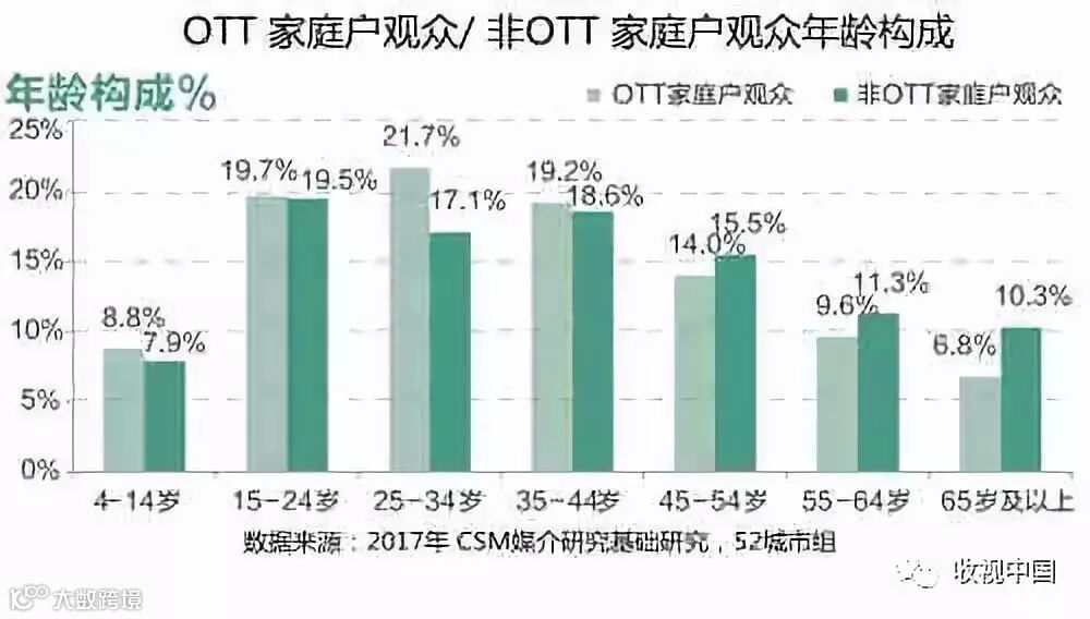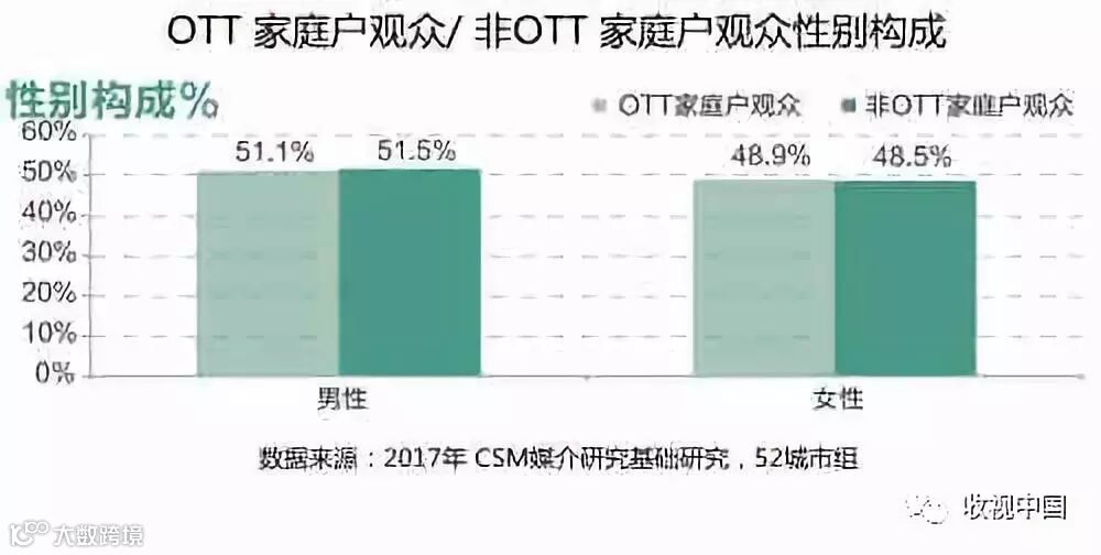 2017年,CSM媒介研究在电视大屏方面的研究进一步深化,以电视大屏标准评估OTT收视的研究思路受到业界广泛认可。作为研究的一部分,本文将简要梳理OTT发展现状并基于CSM52城市组,对OTT观众从人口属性和收视特征两方面进行观察,比较其与传统收视设备观众的异同。