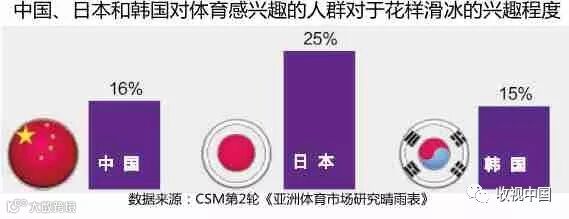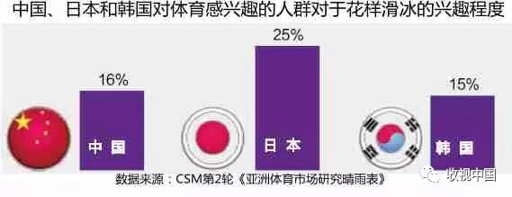 花样滑冰是一项滑冰、音乐和舞蹈相结合的运动,充满了灵动的美感。数据显示:中国、日本和韩国对体育感兴趣的体育人群对花样滑冰的感兴趣比例均在15%或以上,而日本更是高达25%。花样滑冰就像是演出一样,给观众带来无穷的艺术享受。对于这种观赏性高的冬季项目,观众不需要花费额外的时间去理解项目的规则,自然也就更愿意去接受和关注。