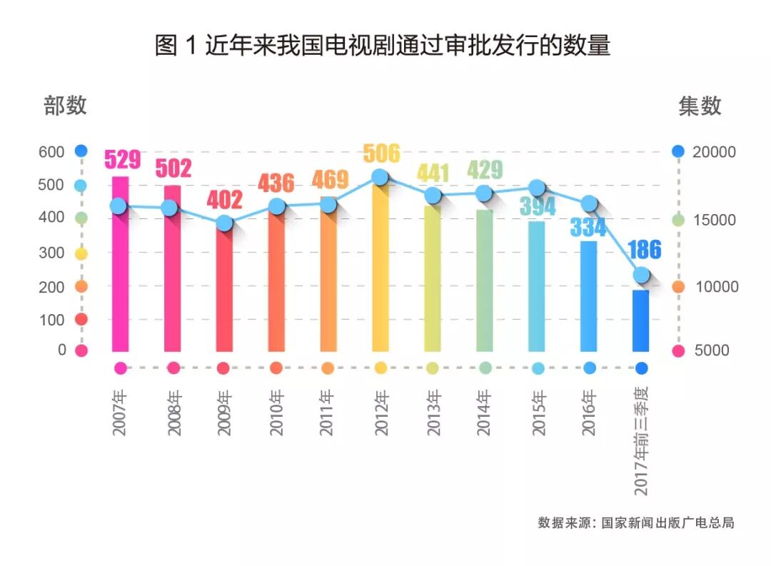 导语:2017年我国电视剧市场向纵深层次发展,既延续了前几年的一贯特征,也出现了诸多新的变化。固化与垄断,突破与逆袭,构成了本年电视剧市场关键词——内容供应方面,政府坚持严控政策,产量持续下滑;题材在集中化中出现新大类,硬中趋软;地面频道仍在业绩欲望与资金缺乏间维持平衡;在全国市场层面,卫视频道间的竞争形成了阶层固化与优势资源的垄断,头部卫视之间竞争异常激烈,洗牌加速;现实背景电视剧强力突破重围,出现收视黑马,形成一股难得的清流,为我国电视剧市场下一步发展提供了新的思路。
