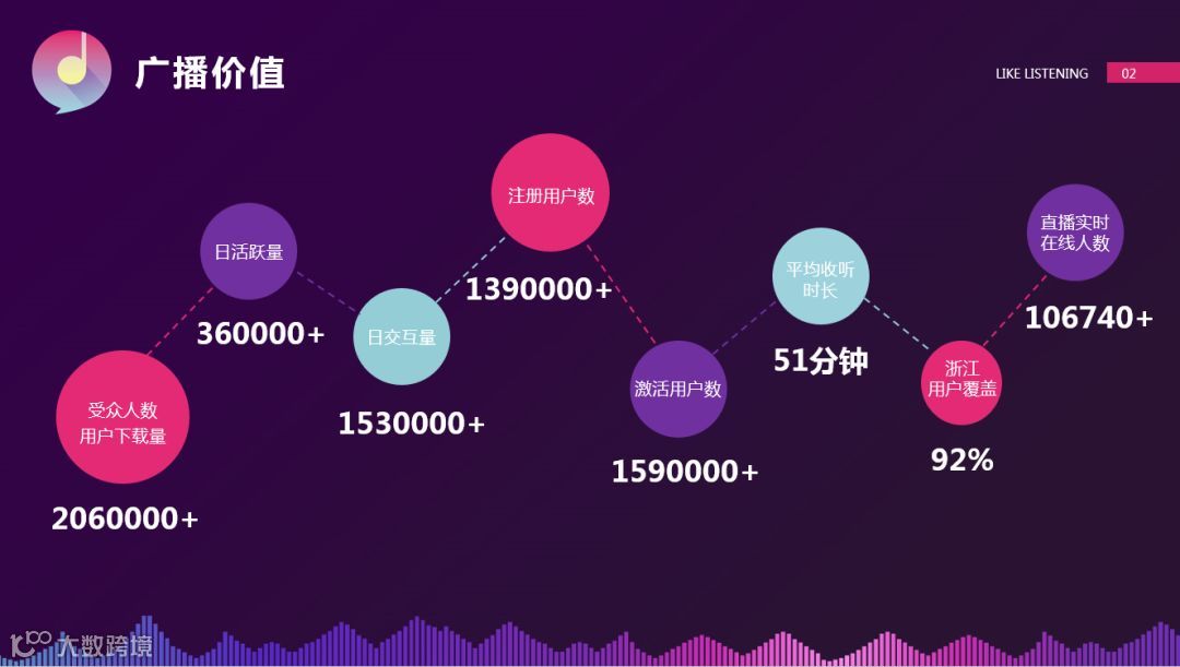在运营的基本数据中,我们在意的不是总的下载量,我和我的团队特别看中的是日交互量和日活跃量。我们需要和每个用户进行交互,不希望用户下载了“喜欢听”之后,即使在听也不同我们进行对话。无论是任何角度,我们的产品都希望进行交互,我们要做核心用户的圈层鉴定,希望每个用户进来之后都能努力生成为头部阵营,这是我们努力的方向。同时,我们对平均收听时长也比较在意,有的用户打开之后就关闭了,这说明平台对他的吸引力不够,我们希望加长收听时间。