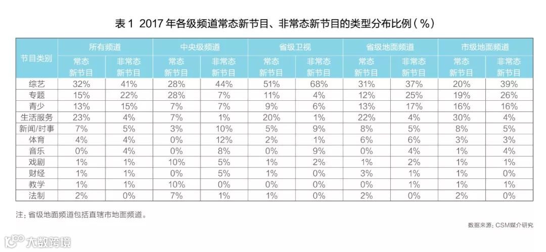 [2]本文对新节目的界定为:各上星频道18:00-24:00播出、省/市级地面频道17:00-24:00播出,同名称节目在2012年1月1日至2016年12月31日期间未出现过,节目长度超过20分钟(含20分钟)。以下节目类型不属于新节目范围:广告、频道包装、节目预告、导视节目、电视剧、电影、外语、各类体育赛事等。