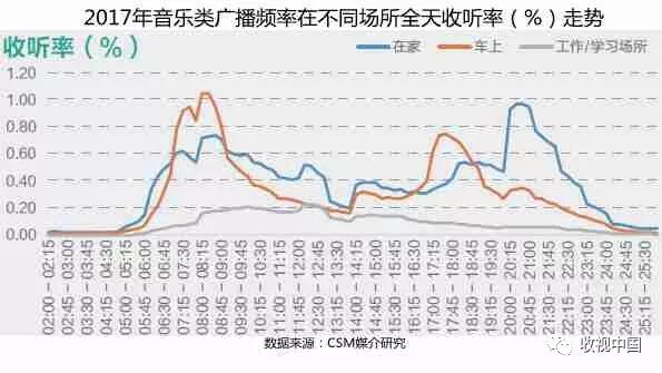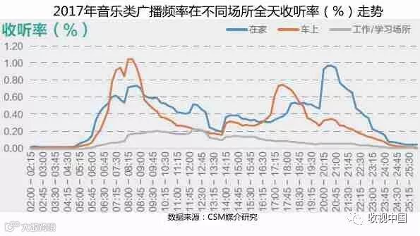 4、音乐类频率在不同地点的全天收听曲线呈现差异化