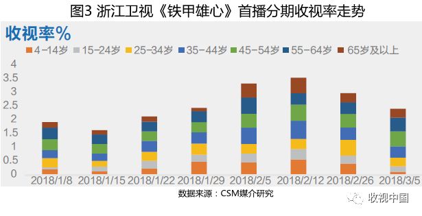 [4]图3数据范围:71城,2018年1月1日-5月1日,浙江卫视《铁甲雄心》周一首播档。