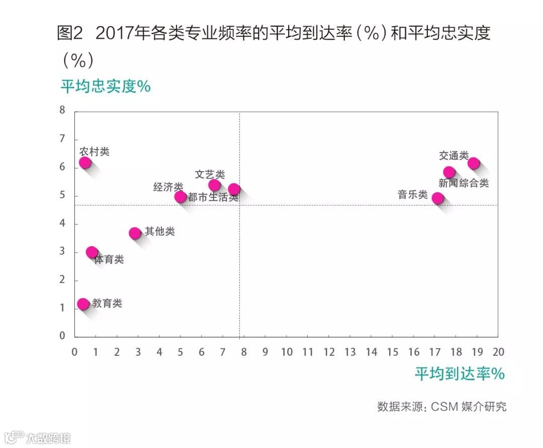 2、新闻综合类频率拥有大听众规模和高听众粘性