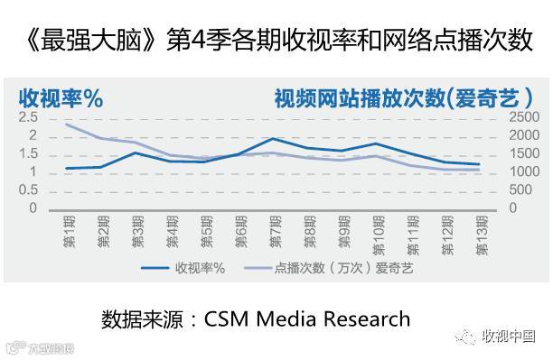 在2017年初播出的第四季中,小度作为重要的挑战者,对拥有“最强大脑”的超强人类发起了挑战,并最终与人类选手共同获得了“脑王”奖杯。从电视端、社交媒体数据来看,《最强大脑》第四季都获得了较好的成绩,其中71城市收视率单期最高接近2%;截止9月初,视频网站(爱奇艺为例)单期最高点播量接近2400万次;微博电视指数周均阅读量达到1.8亿次。