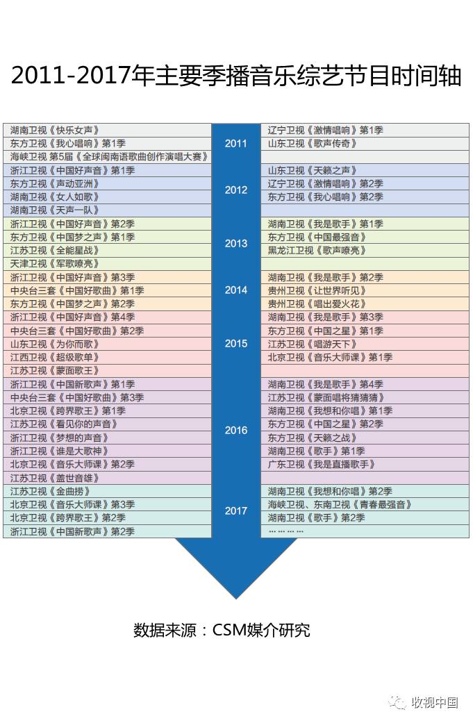 2011年10月国家广电总局下发“限娱令”,对上星频道播出节目的类型、数量、播出时间等进行管控指导。这一政策实施后,近年国内涌现出一批现象级的季播音乐综艺节目,并且生命力持久。