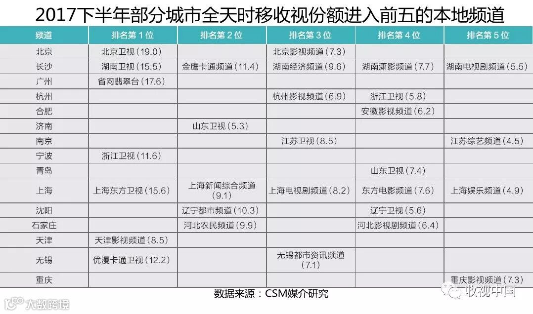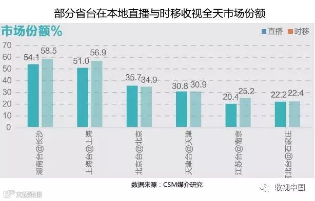 地面频道时移收视:湖南台、上海台在本地时移市场份额超过50%,省台影视剧类频道时移收视量更大