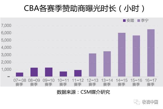 高昂的费用也带来了超高的权益。2012-2013赛季李宁在大陆CBA电视转播中得到的曝光时长是上赛季安踏的3倍。2016-2017赛季曝光时长达到峰值的同时,李宁也终于走出了2012年巨亏20亿的阴影,实现了6.43亿的盈利。