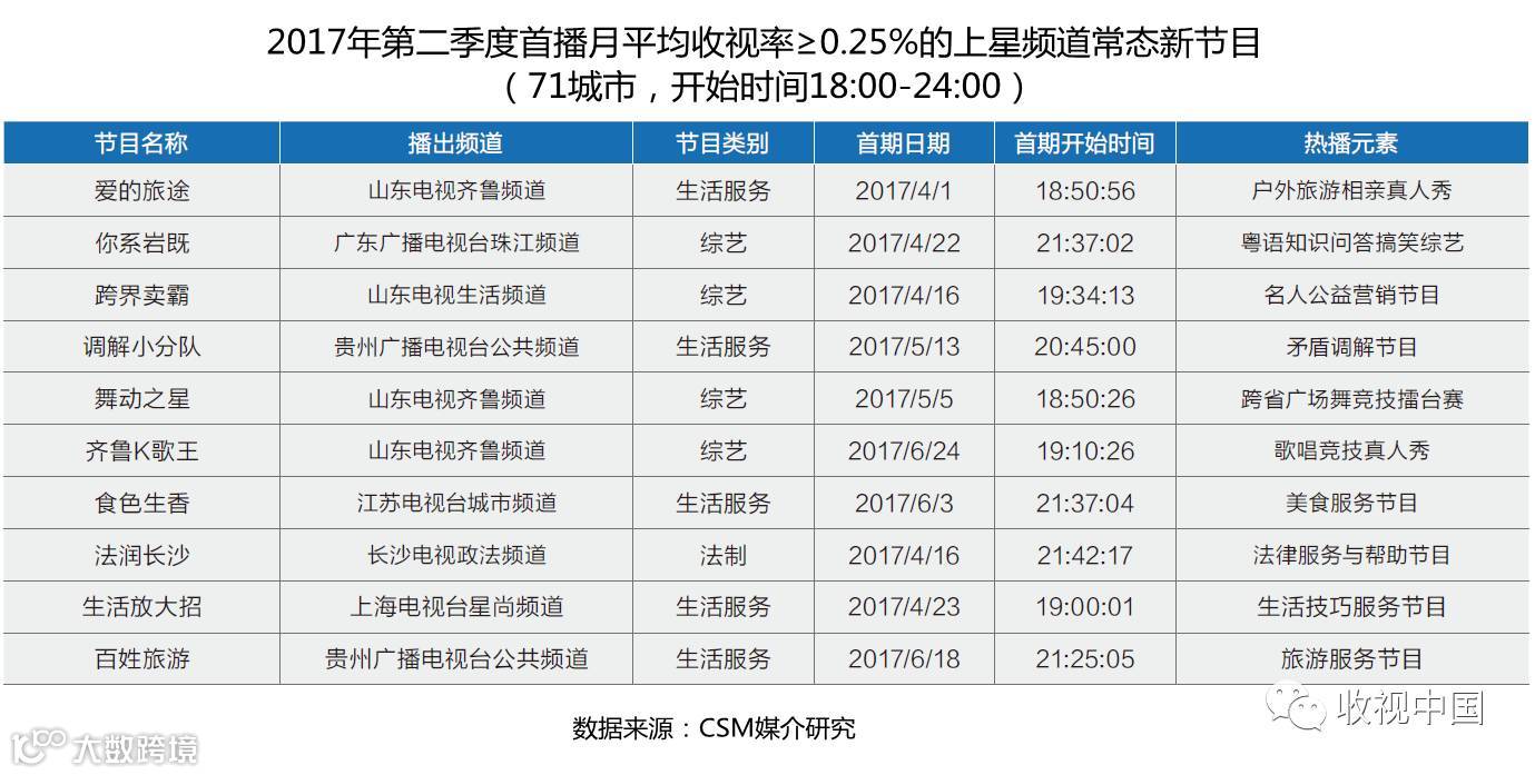 本文以2017年第二季度71城市市场中晚间播出的新节目为分析对象,从播出、收视和创新特征等方面梳理分析,揭秘电视节目创新的第二季。
