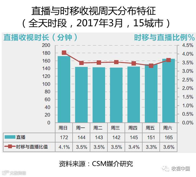 时移收视高峰通常较直播收视高峰推迟一个小时出现,观众时移收视最多的频道主要是中央电视台频道和省级上星频道。时移收视量最大的观众是中青年人群,且周末时移收视明显高于工作日。时移收视产生的观众增量,会为一些频道带来总体收视的提升。时移收视为电视频道产生可观的受众增量这一现象,在节目收视数据上有明显的体现,这对所有电视频道乃至节目制作公司都是一个启发和鼓舞。