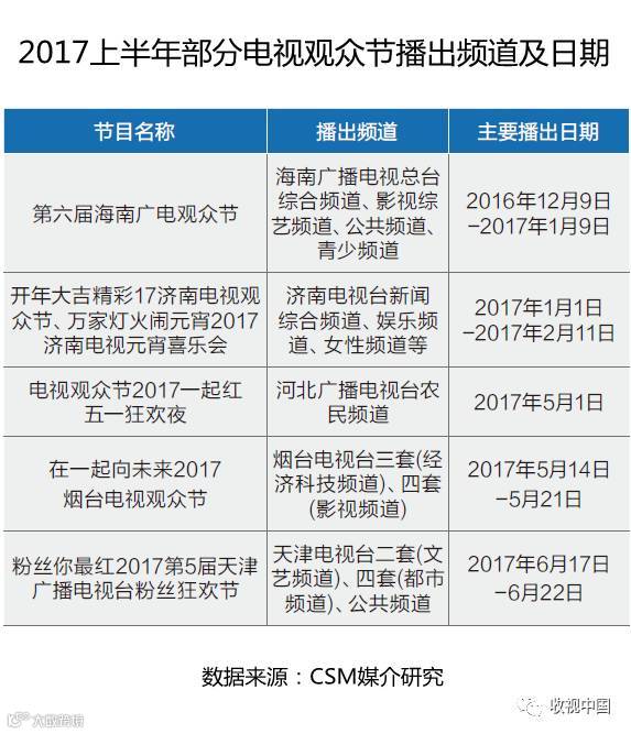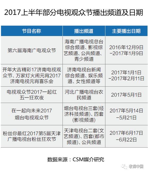 为了更好地服务电视观众,拉近观众与电视媒体之间的距离,许多电视媒体陆续开始举办电视观众节,架起电视媒体与观众之间的桥梁。根据2017上半年播出的节目情况,海南广播电视总台、济南电视台、河北农民频道、烟台电视台、天津广播电视台等都播出了各具特色相关节目。其中部分电视观众节已连续举办多年,不断在原有传统活动基础上扩充活动内容和传播形式,丰富了观众的精神和文化生活。