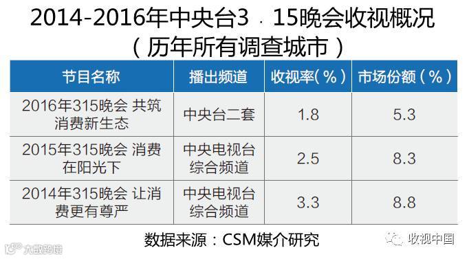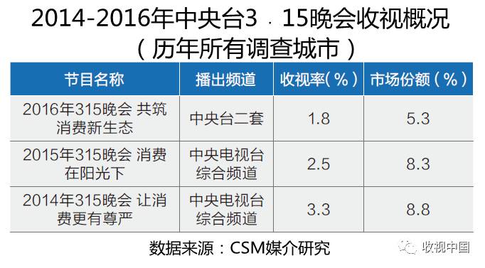 3月15日:中央电视台3﹒15晚会收视较往年下滑