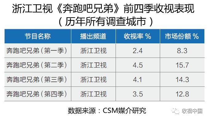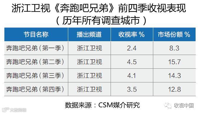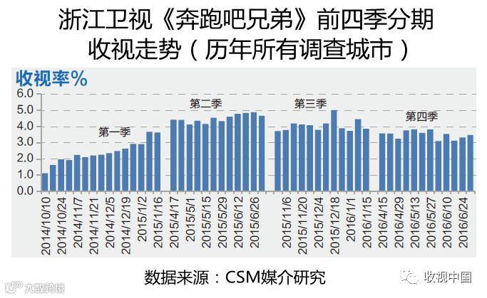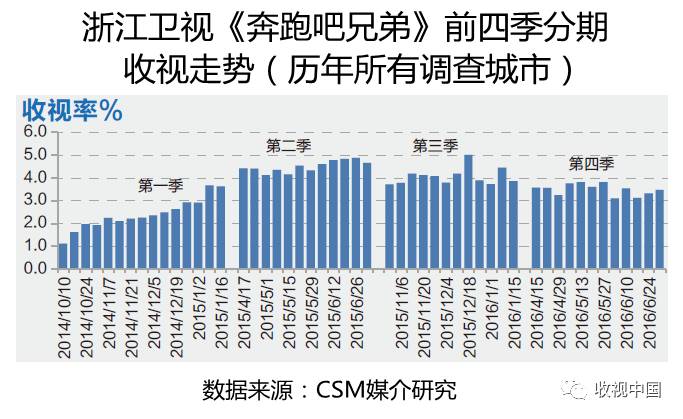 大型户外竞技真人秀节目《奔跑吧兄弟》第四季于2016年4月15日起每周五21:00在浙江卫视播出,于2016年7月1日收官。第四季12期节目平均收视率为3.5%,同时段份额为12.8%,整体收视表现低于前两季,但仍是2016年收视表现最好的季播综艺节目。