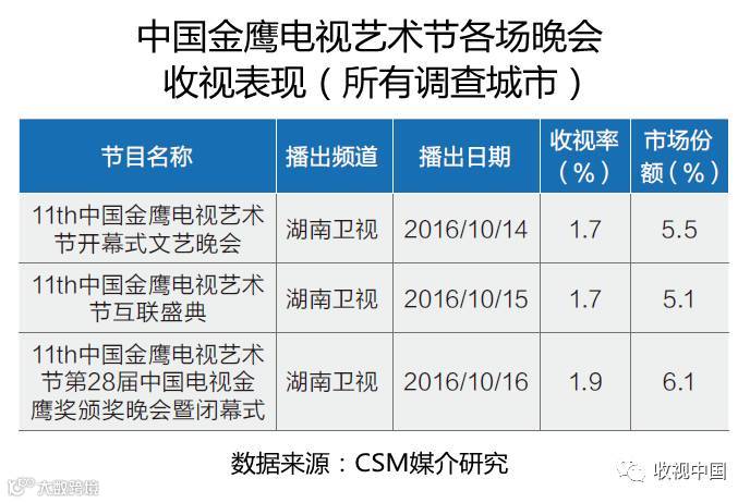 10月14日:“中国金鹰电视艺术”节专场晚会收视较上届下滑