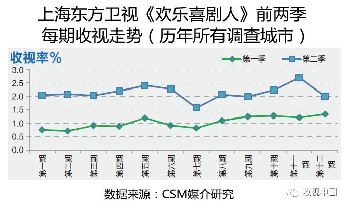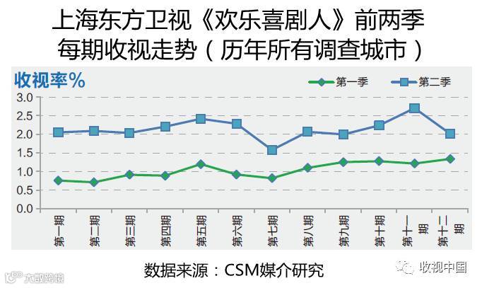 《欢乐喜剧人》是由东方卫视与欢乐传媒联合打造的明星喜剧竞赛真人秀节目,由郭德纲担任主持,岳云鹏、小沈阳、潘斌龙、崔志佳等担任参赛选手。该节目于2016年1月17日起每周日21:00在东方卫视首播,于2016年4月10日收官。《欢乐喜剧人》第二季12期节目平均收视率为2.1%,同时段份额为7.8%,远高于第一季收视水平。其中4月3日一期的收视率达到2.7%,同时段份额为9.3%。