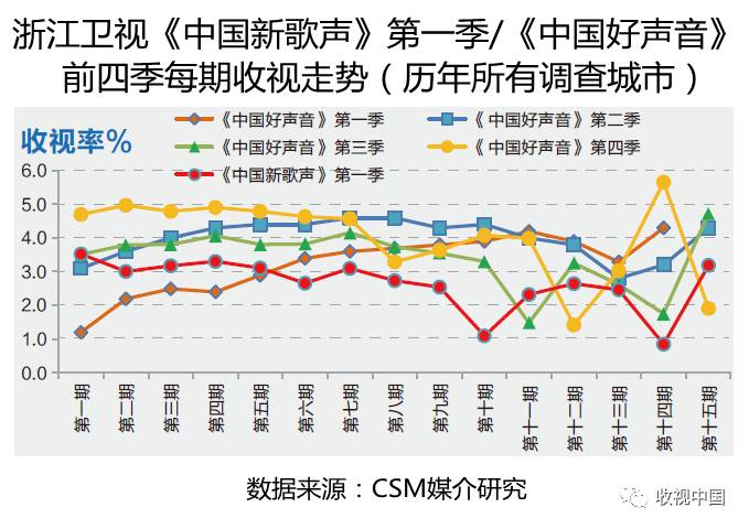 大型原创励志专业音乐评论节目《中国新歌声》由浙江卫视联合星空传媒旗下灿星制作打造。本季《中国新歌声》由周杰伦、汪峰、那英、庾澄庆四位明星担任导师,2016年7月15日至10月7日每周五21:00在浙江卫视首播。《中国新歌声》第一季平均收视率为2.7%,同时段份额为10.0%,收视表现整体低于之前四季《中国好声音》。除第十期和第十四期为中秋、国庆演唱会特辑收视较低外,本季各期节目收视表现比较平稳。