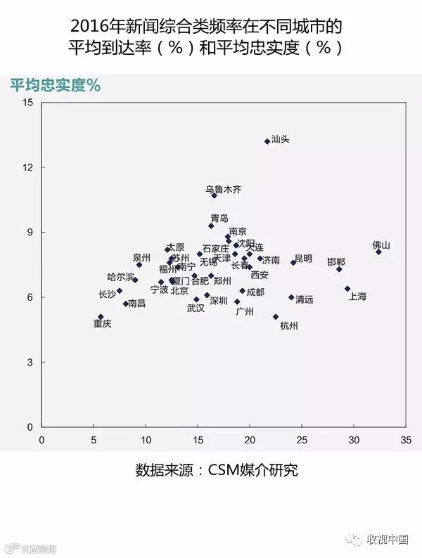 数据显示,新闻综合类频率在多数城市的市场份额排名均位居前列。