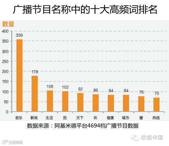 实际上在开发和利用广播APP或节目,对其进行宣传和推广时,是有一些技巧和规律可循的,阿基米德数据实验室基于平台上的4694档节目名称的分析结果就初步给出了一些这方面的导向性建议。研究结果显示,全国的广播电台在给节目起名字时竟有着许多的不谋而合,存在众多的高频词。