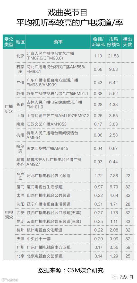 相比于其他频道/率和节目类别,戏曲频道/率或者戏曲类节目的播出和制作成本相对较低,相关广播电视频道/率和节目公司运营者若能以精良的节目为中老年听众服务,积极开发相关商品和服务的广告业务,一定能够实现优质受众服务和高利润率广告营收的双赢目标。