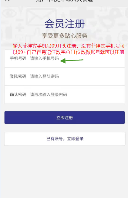 导读:Tips:有会员号直接使用原来旧系统账号密码不变直接登入输入账号:菲律宾手机号密码:****没有会员,重新注
