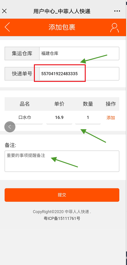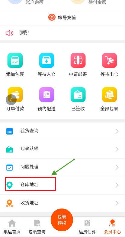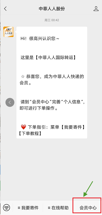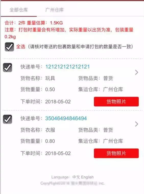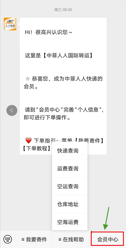 Tips:包裹入库,公众号会有通知,若包裹已到齐,需要申请打包。