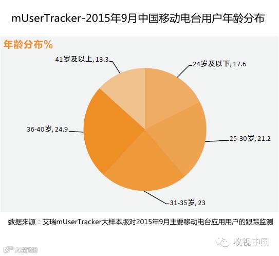 从年龄分布来看,移动电台用户以20到40岁的中青年群体为主,尤以31到40岁的上班族群体更为突出,占比接近总用户数的一半。各年龄段用户分布相对较为均衡。