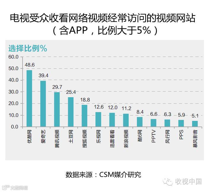 腾讯视频、土豆网、搜狐视频、乐视网等其他主流的大型视频网站也均榜上有名。然而,不容忽视的是,除了这些主流的大型视频网站外,电视受众收看网络视频经常访问的网站还有其他各种回答共计45项之多,这些回答囊括了提供电视在线直播收看的网站(如央视影音、风云直播、直播吧)、综合视频网站(如网易视频、搜狗影视)、专业电影/动漫网站(如电影天堂、动漫之家)、全民直播分享网站(如战旗TV、斗鱼TV、虎牙直播)等多个类别。