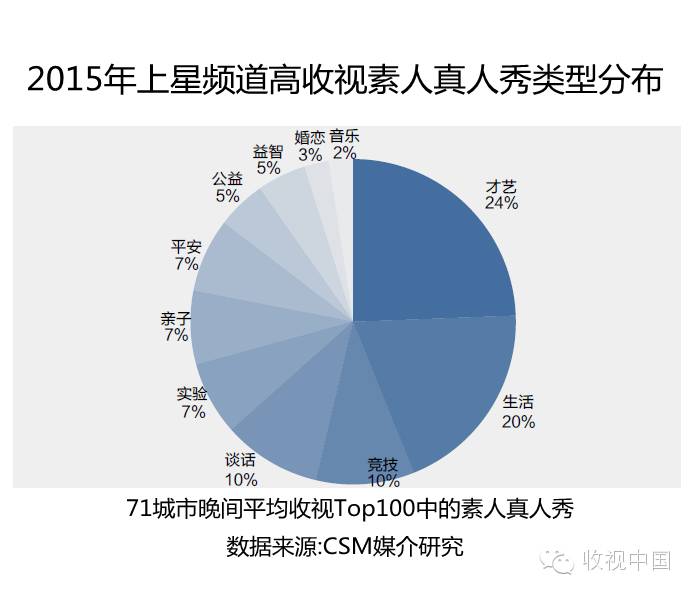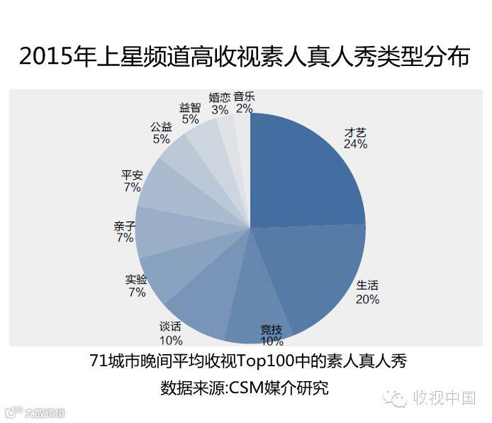 以“真”为本,以“秀”为末,这是真人秀成功的不变法则。明星善于秀,素人胜在真。观察2015年上星频道新开播的高收视素人真人秀的类型分布,可以发现以才艺展示或竞技为主题的素人真人秀创新量较大,才艺表演、才艺养成、才艺选秀是此类节目的主要形式。
