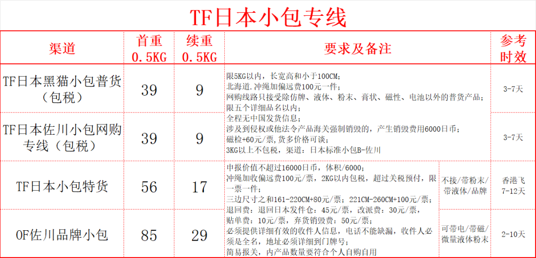 日本特货小包 C/D、TF 特货这类 “特殊品类通道”,集运前置特货合规性审核,从电池容量到磁电参数,逐一核验确保符合运输标准;甚至提供特货包装加固,让充电宝、小电器在运输中 “稳如泰山”。