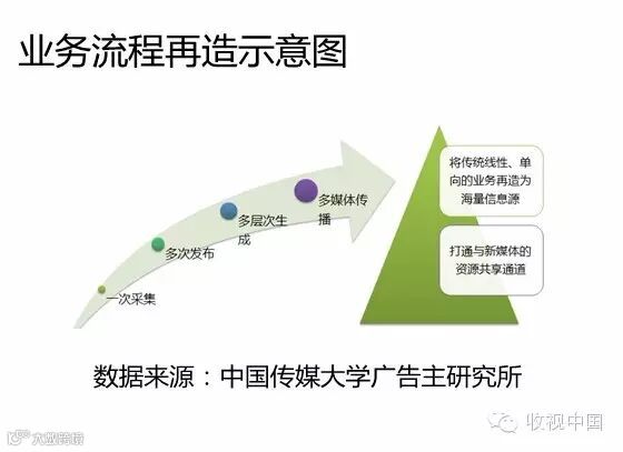 在媒介融合背景下,可以借鉴发达国家如英国BBC、美国CNN、FOX等的经验,组建连接各个媒体平台的中心枢纽机构,建立功能强大的信息处理平台,实现统一的信息采集、策划、处理,实现跨媒体资源的共享与整合,以及多种终端的内容分发;将传统线性、单向的业务流程再造为海量信息源,形成一次采集,多次发布、多层次生成、多媒体传播的业务流程,打通与新媒体的资源共享通道。