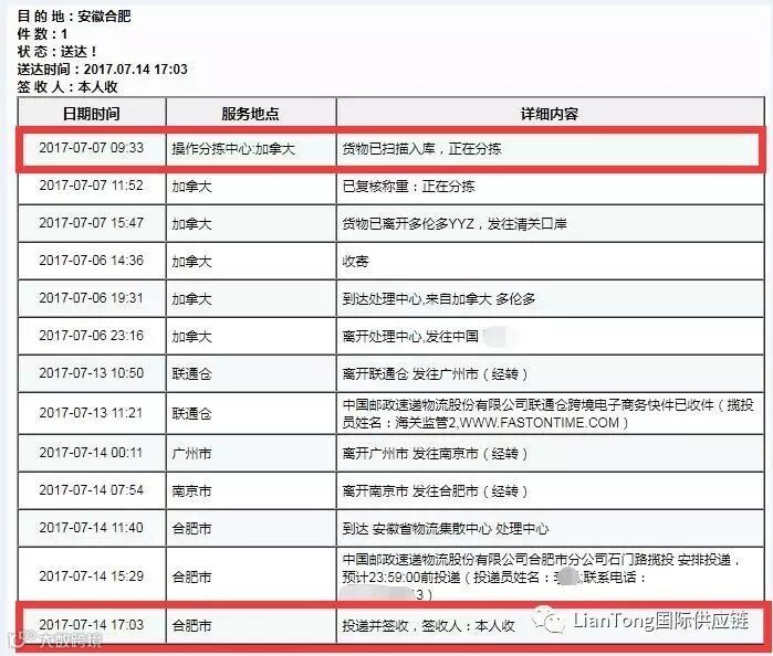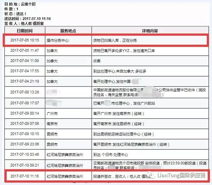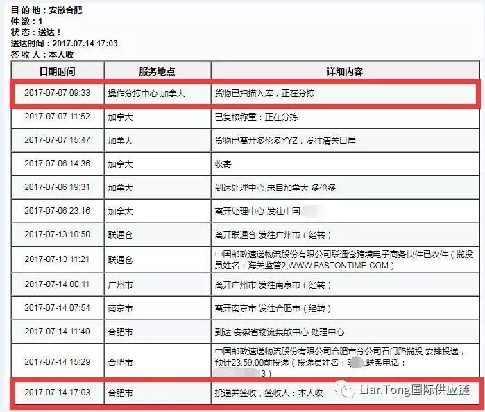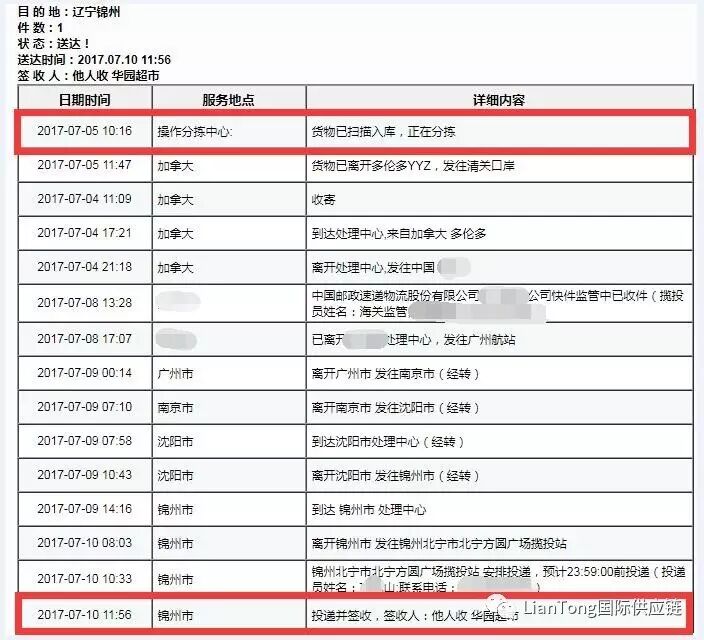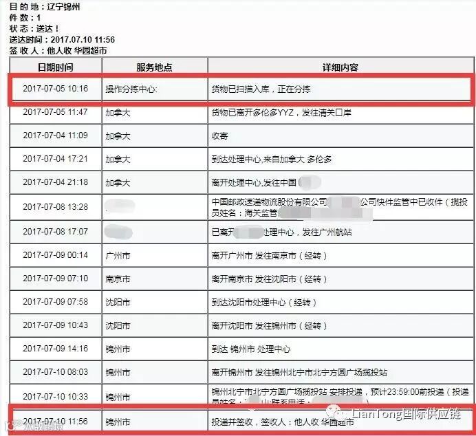 单号可在EMS官网可查询到加拿大收寄记录。