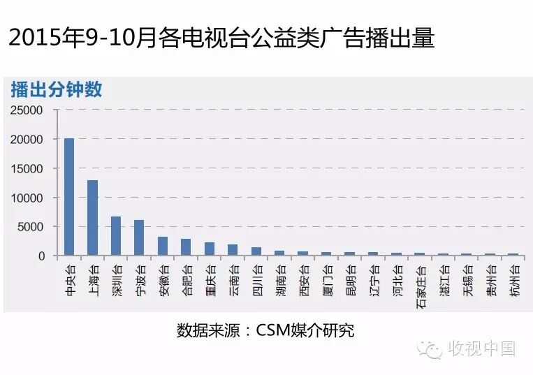 从目前各电视媒体的播出量观察,公益广告在电视频道的播出量处于较低水平,播放量有待提高。