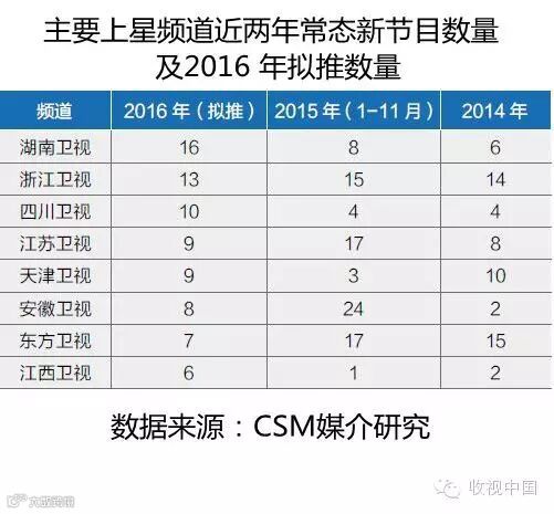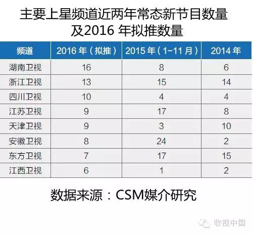 资料显示,2016年湖南、浙江、江苏等强势卫视依然保持极高的新节目上档率。