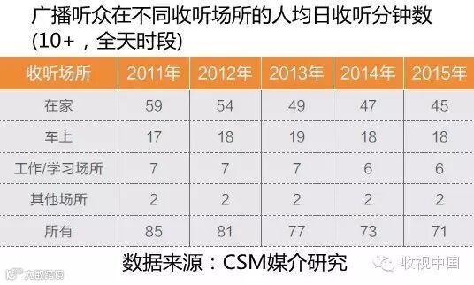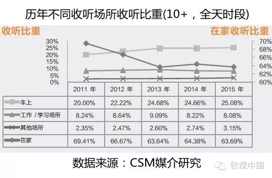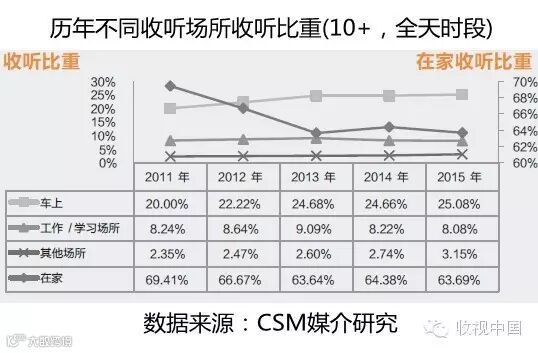 随着私家车拥有率的提升或者饱和,再加上机动车限行限购现象的增多,车上收听率的高速增长已不可再冀。