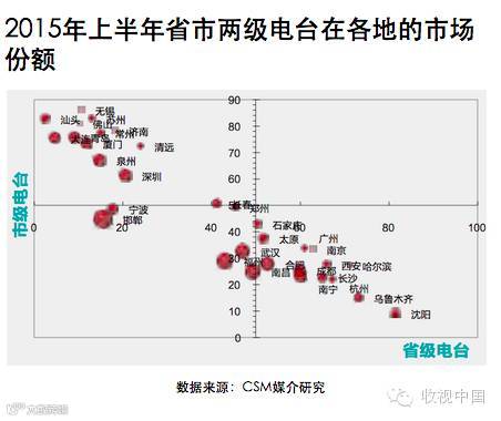 而在郑州、长春、石家庄等地,省市两级电台基本上势均力敌,各占据45%左右的市场份额。